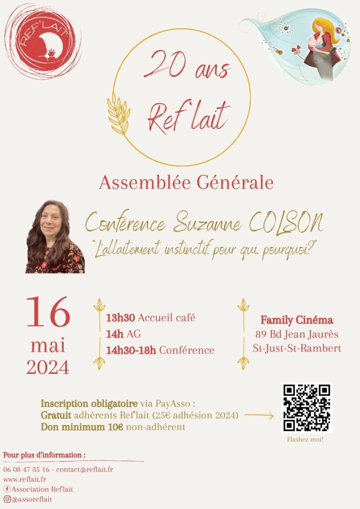 Assemblée Générale de Ref’lait – 20 ans de l’association : conférence de Suzanne Colson sur Allaitement Instinctif pour qui? pourquoi? à St-Just-St-Rambert – cinéma Family