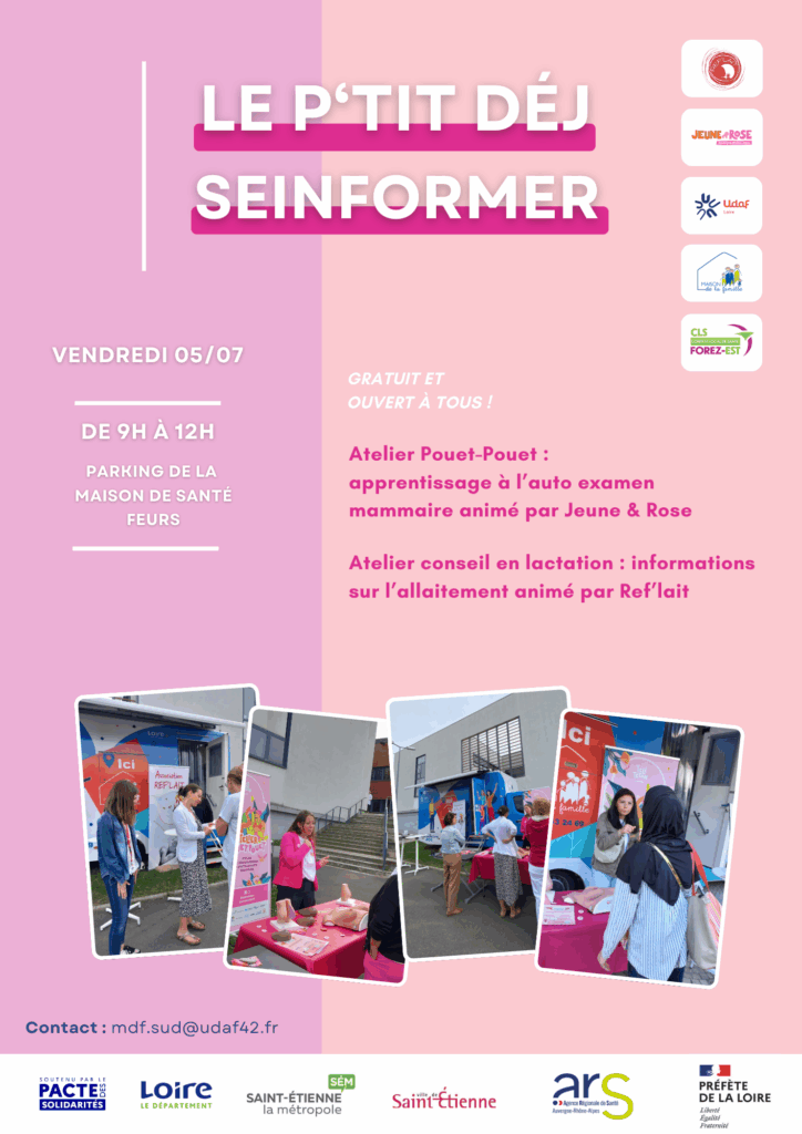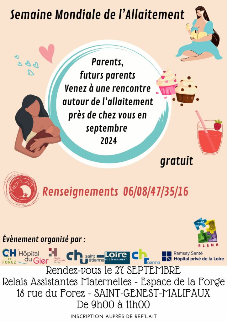 – SEINformer à Saint-Chamond en partenariat avec le CH du Pays du Gier - Juillet : 2 « Thé tées allaitement » au Centre social de Beaulieu à Saint-Etienne et PMI du Département de la Loire à Saint-Jean-Bonnefonds