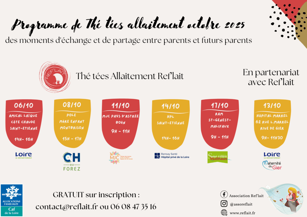 📍13/10 à l’hôpital Marrel – RIVE DE GIER 62 rue Léon Marrel partenariat PMI du Département de la Loire et Maternité Hôpital du Gier – de 9h – 11h30
